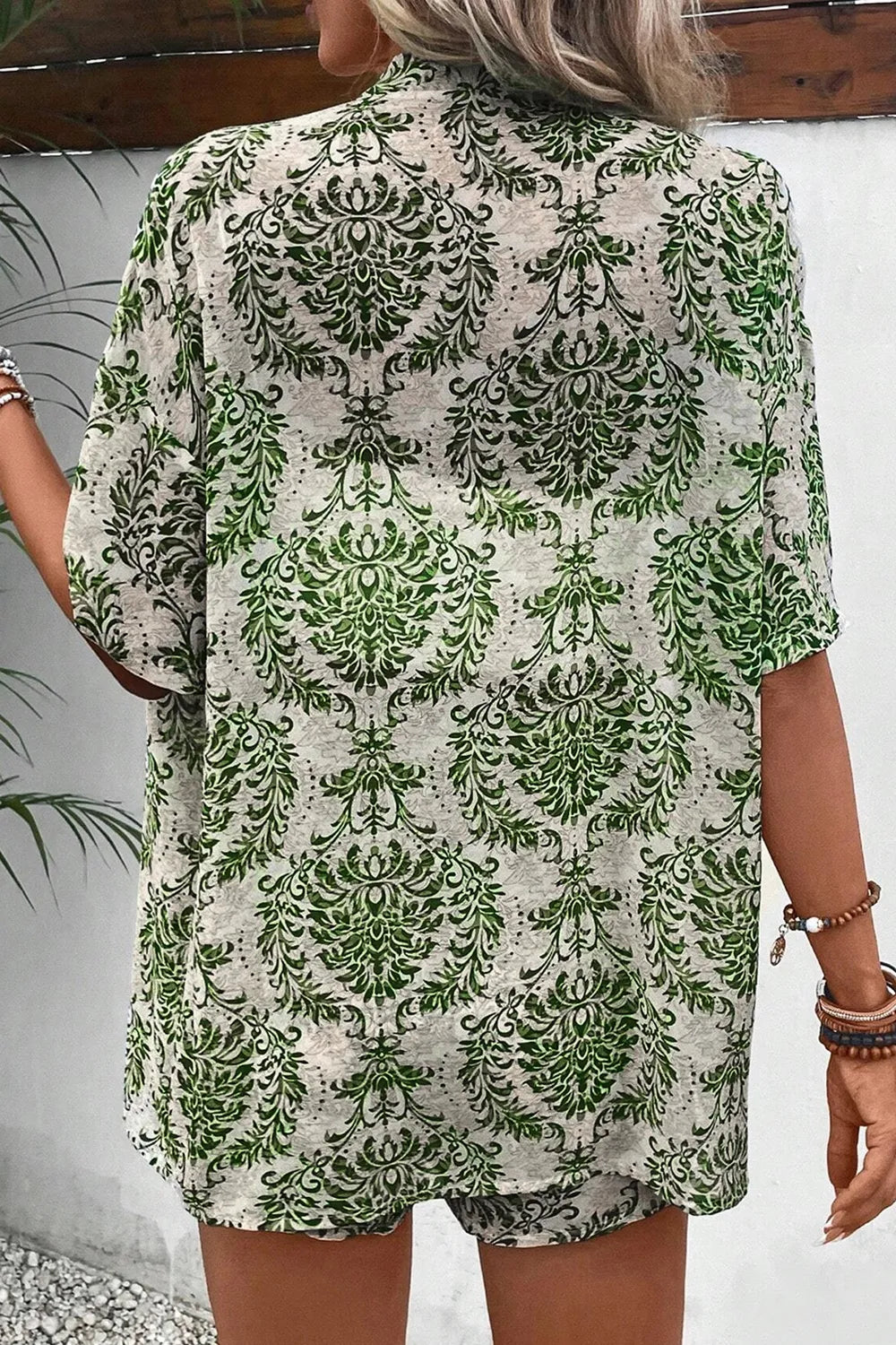 Printed Open Front Top and Shorts Set